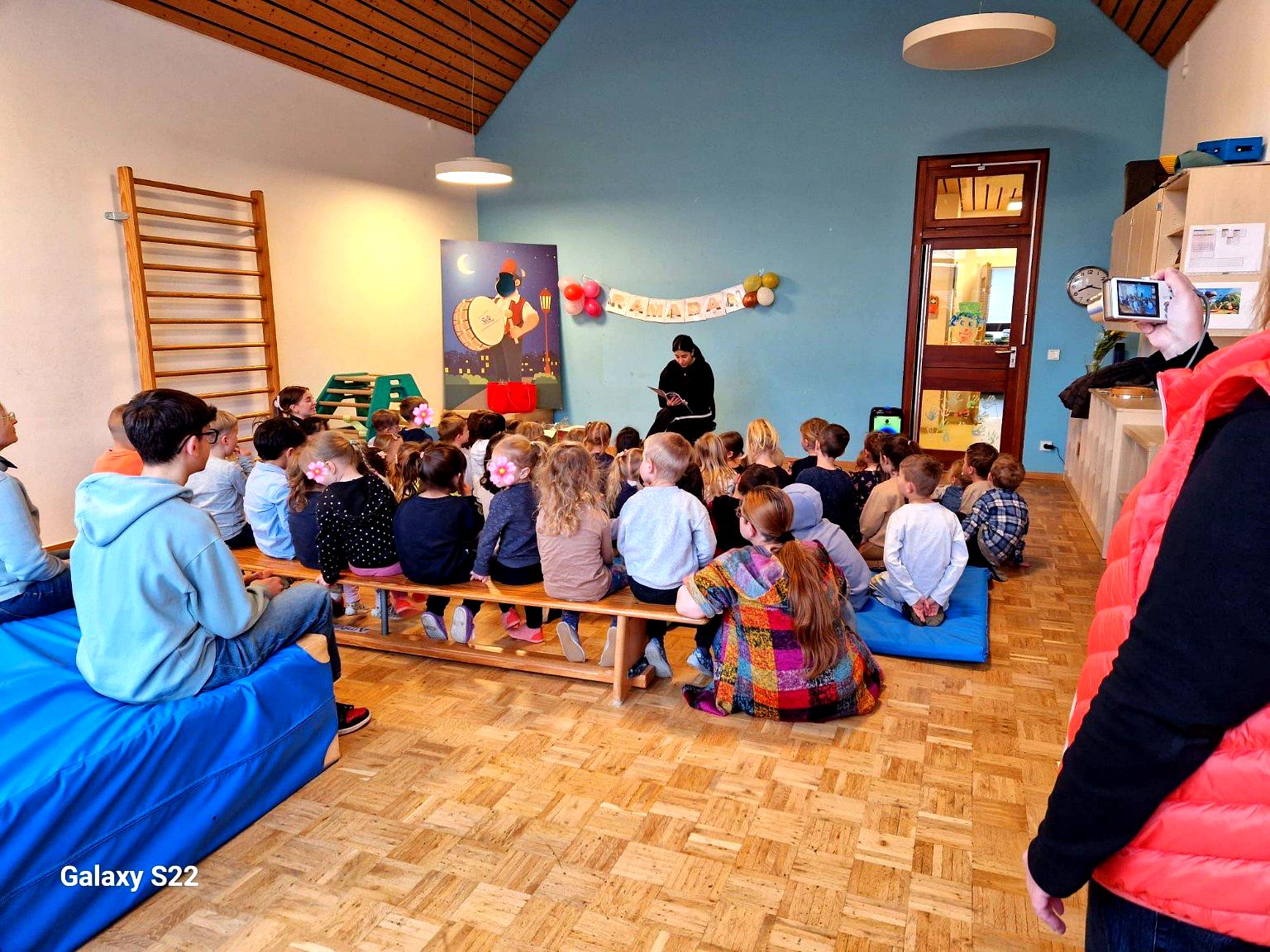 Mit dem liebevoll geschenkten Buch „Das Ramadanfest“ von Meryem, vorgelesen von der Erzieherin Frau Ceyhan aus der ST. Johannes Kita, konnten die Kinder auf kindgerechte Weise den Zauber und die Bedeutung des Ramadans entdecken.