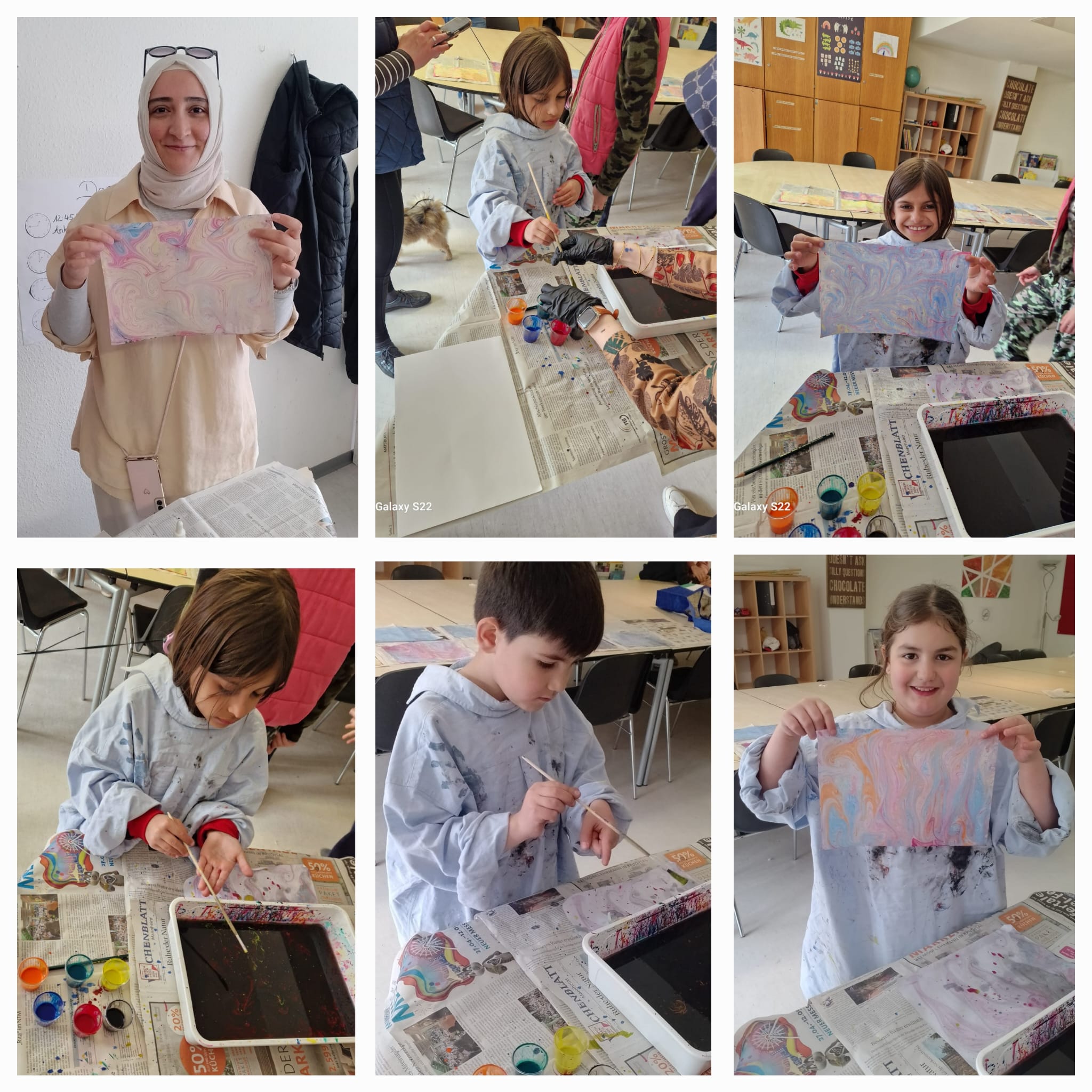 Gemeinsam mit Frau Aydin und Frau Karlicali haben die Kinder die traditionelle Kunst der Ebru-Malerei kennengelernt – ein kreatives und entspannendes Erlebnis, das bei allen super ankam.
